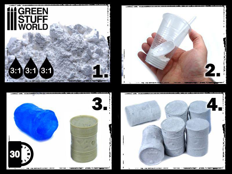 Elaborada con una fórmula especial, este es el producto perfecto para utilizar con moldes. Su capacidad para grabar todo detalle y la resistencia natural de las piezas lo convierte en un producto ideal para crear piezas escénicas para mesas de juegos de guerra, diseños de trenes, bases o dioramas. Es fácil de tallar, lijar, pintar y pegar una vez está curado.