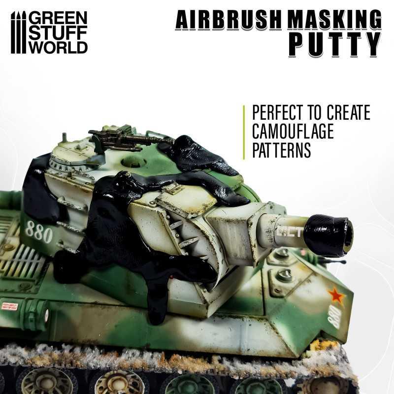La masilla de enmascarar para aerógrafo o masking putty es un material flexible que se utiliza en modelismo y pintura para enmascarar zonas que desea proteger de la pintura u otras aplicaciones. Funciona dando forma y aplicando la masilla sobre la superficie deseada, creando una barrera temporal. Una vez pintada, la masilla se retira, dejando unos bordes limpios y nítidos.
