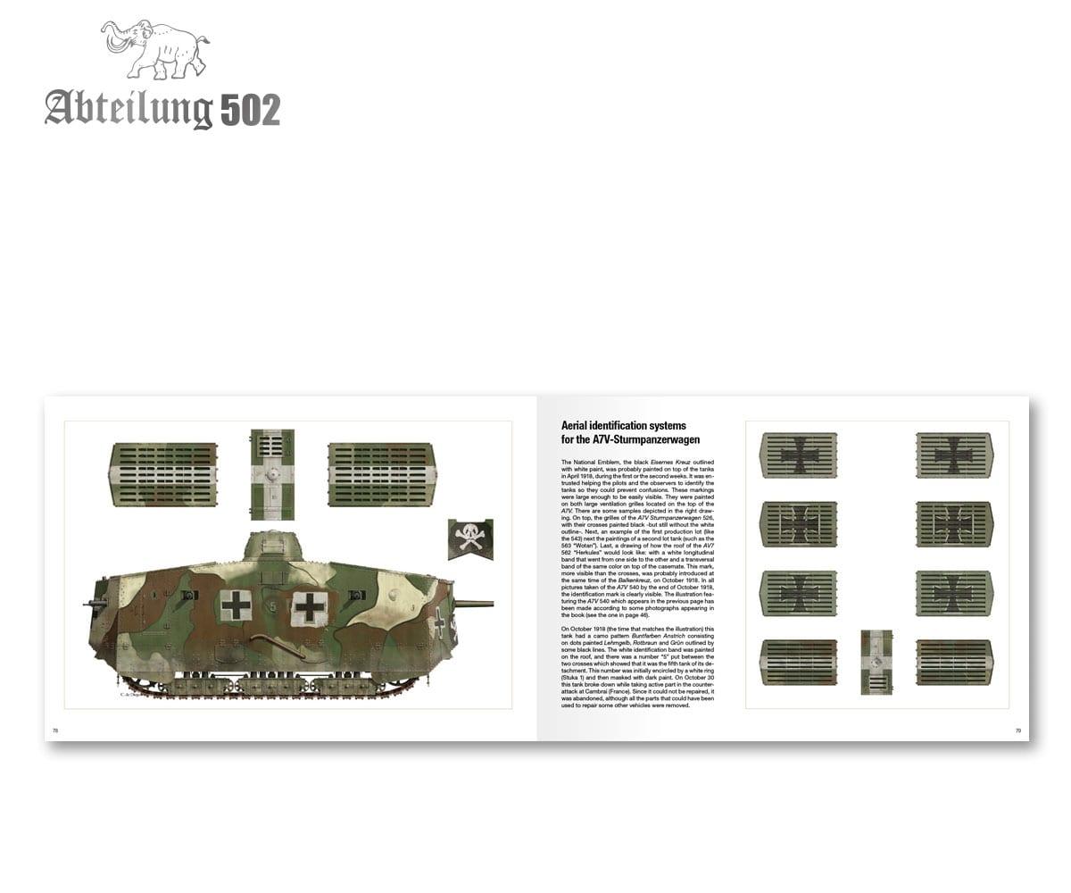 Aunque el ejército alemán usó solo un puñado de tanques durante la Primera Guerra Mundial, aún despiertan mucho interés de los modeladores e historiadores. Esta publicación da una idea del servicio de tanques en el ejército de Alemania en 1917-1918, y proporciona una visión detallada de la historia y los esquemas de pintura del único tanque usado en combate que había sido fabricado en Alemania durante la Primera Guerra Mundial, el A7V. También están cubiertos varios tanques capturados que habían sido utilizados por los alemanes.