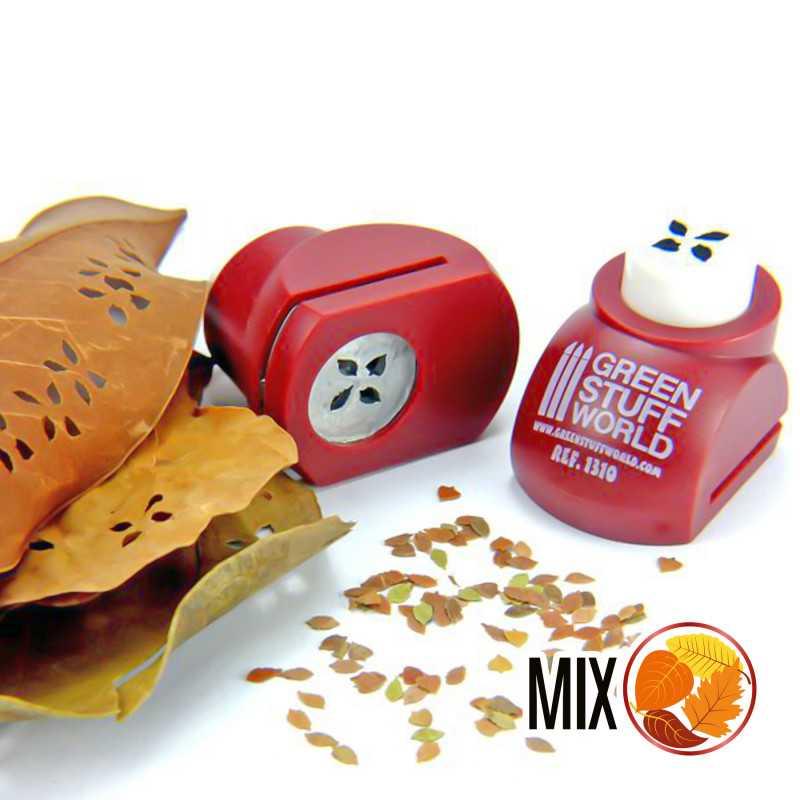 Perforadora para fabricar hojas en miniatura compatibles con escalas de 1:35, 1:43, y 1:48 (54mm, 32mm, y 28mm). Se pueden utilizar diversos tipos de papel y materiales. Recomendamos utilizar hojas secas de diferentes colores.