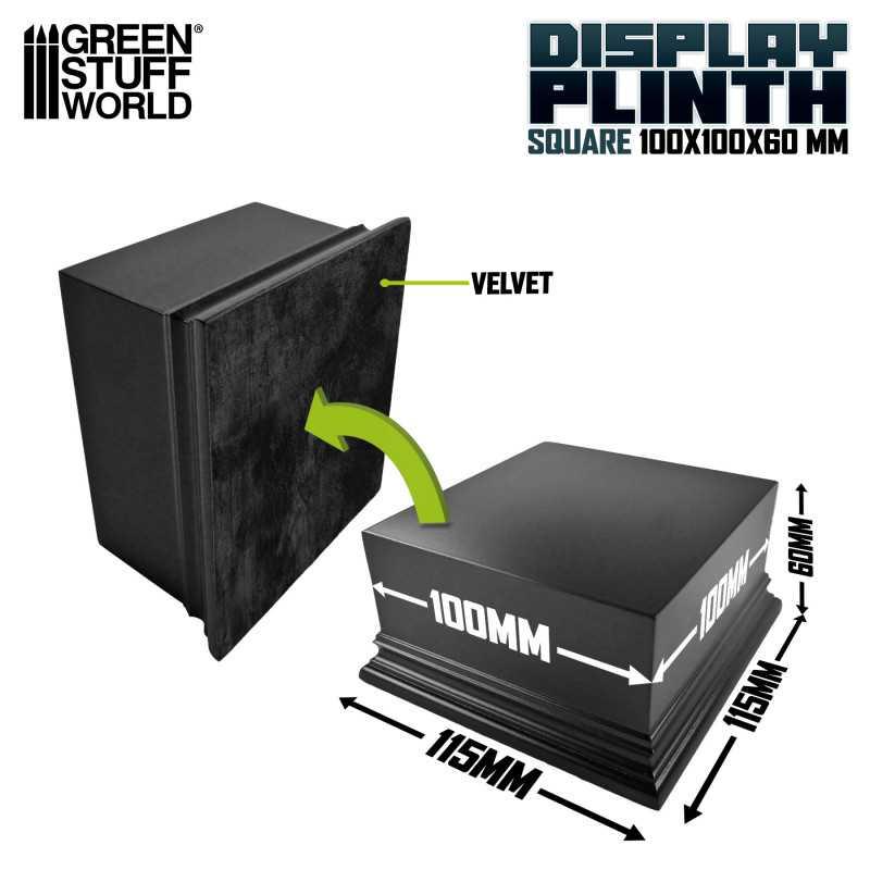 Peanas de madera o pedestal hecho de DM, ideal para colocar y exhibir tus figuras. La base de la peana está cubierta de una fina moqueta de color verde oscuro.