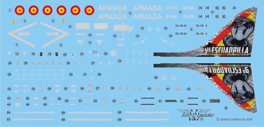 Calcas AIR TATTOO 2023. HARRIER AV-8B Plus de la 9ª Escuadrilla de la ARMADA. Escala 1/48