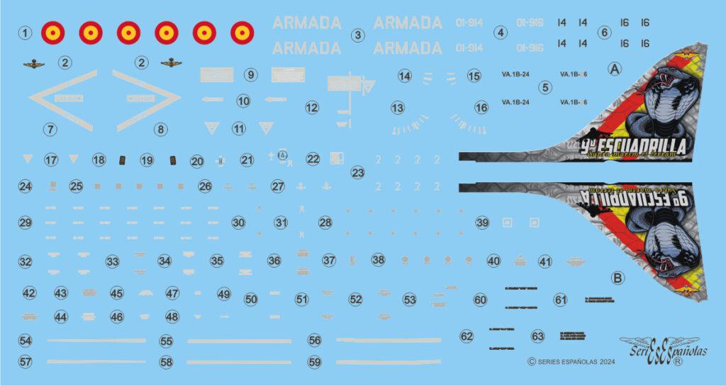 Calcas AIR TATTOO 2023. HARRIER AV-8B Plus de la 9ª Escuadrilla de la ARMADA. Escala 1/72