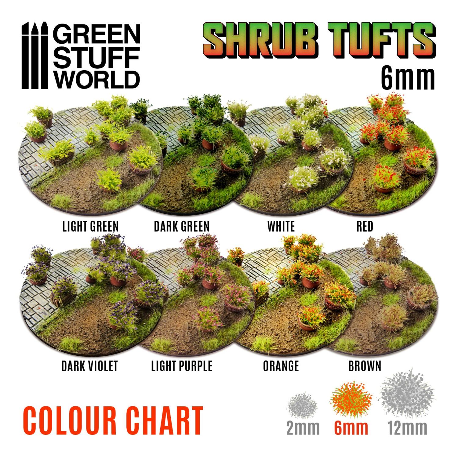 Innovadoras matas de arbustos (o Shrubs Tufts en ingles) autoadhesivas ideales para decorar peanas de miniaturas, maquetas, escenografía, paisajes, caminos, etc .... Basta con despegar los arbustos con unas pinzas, y fijarlos con su pegamento autoadhesivo sobre la superficie a decorar. Tener en cuenta que aunque sean autoadhesivos, una gota de cola blanca podría ser necesaria en algunas superficies irregulares para una solución permanente.
