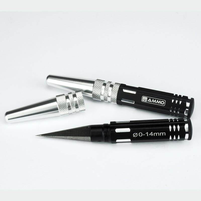 Escariador tipo punzón para abrir y expandir agujeros en poliestireno, policarbonato y otros plásticos y materiales blandos. Cómodo y versátil: permite crear y agrandar agujeros de diferentes diámetros con una sola herramienta. Ideal para trabajos de detallado, construcción integral y conversiones en maquetas y miniaturas.