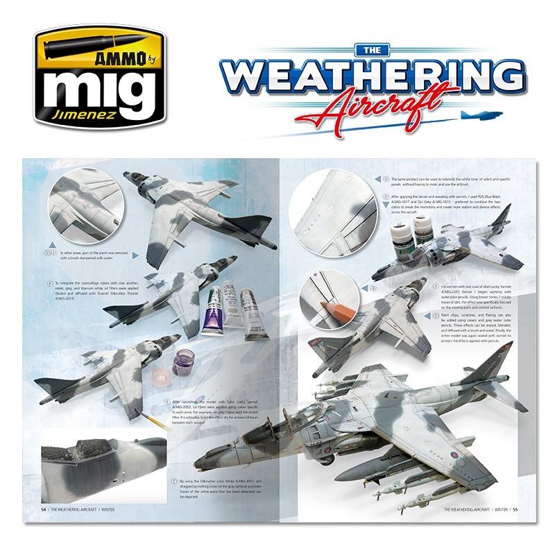 Nuestros colaboradores nos enseñarán cómo manejar una amplia gama de productos para conseguir los mejores acabados. Pondremos especial interés en los camuflajes blancos que se pintaban de manera descuidada y provisional. También hemos incluido en este número tanto aviones operativos desde la Segunda Guerra Mundial hasta nuestros días, incluyendo helicópteros, todos ellos con atractivos esquemas invernales.