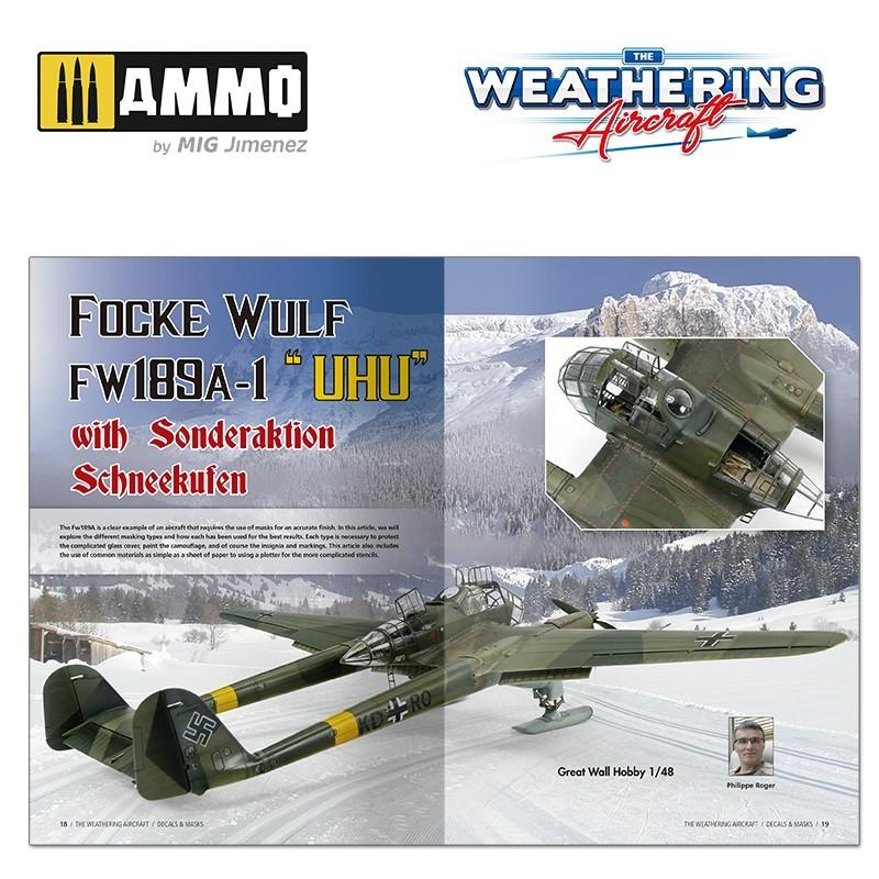 ¡El número 17 de The Weathering Aircraft!. A menudo nos encontramos con calcas complicadas de usar, muy grandes o simplemente no disponemos de ellas. En este número verás cómo resolver dichos problemas o cómo realizar una mascarilla para reemplazarlas. Conocer algunas técnicas será fundamental para conseguir que nuestros emblemas, códigos o stencils queden realistas y completamente integrados en la maqueta. Veremos cómo preparar una mascarilla, las diferentes formas que hay de hacerla y cómo trabajar con ella. También nos enfrentaremos a calcas complicadas, aprendiendo a resolver los problemas y evitar como que se noten los bordes, el temido silvering. Tampoco nos hemos olvidado de mostrar algunos trucos, productos específicos y barnices que debemos utilizar antes y después para evitar sorpresas. Como siempre en TWA, han colaborado algunos de los mejores modelistas en aviación del mundo, poniendo especial interés en mostrar magníficas maquetas, un sencillo paso a paso y acompañar todo ello de un texto claro y fotografías de alta calidad. En resumen, una revista completa con la que vamos a poder aprender cómo usar las calcas y mascarillas obteniendo unos resultados extremadamente realistas.