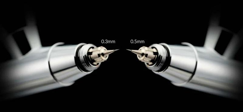 ofrece configuraciones de boquilla simple de 0,3 mm y de boquilla doble de 0,3 mm y 0,5 mm, lo que permite satisfacer fácilmente una amplia gama de necesidades creativas, desde detalles finos hasta la pulverización de grandes superficies, logrando un equilibrio ideal entre precisión y eficiencia.